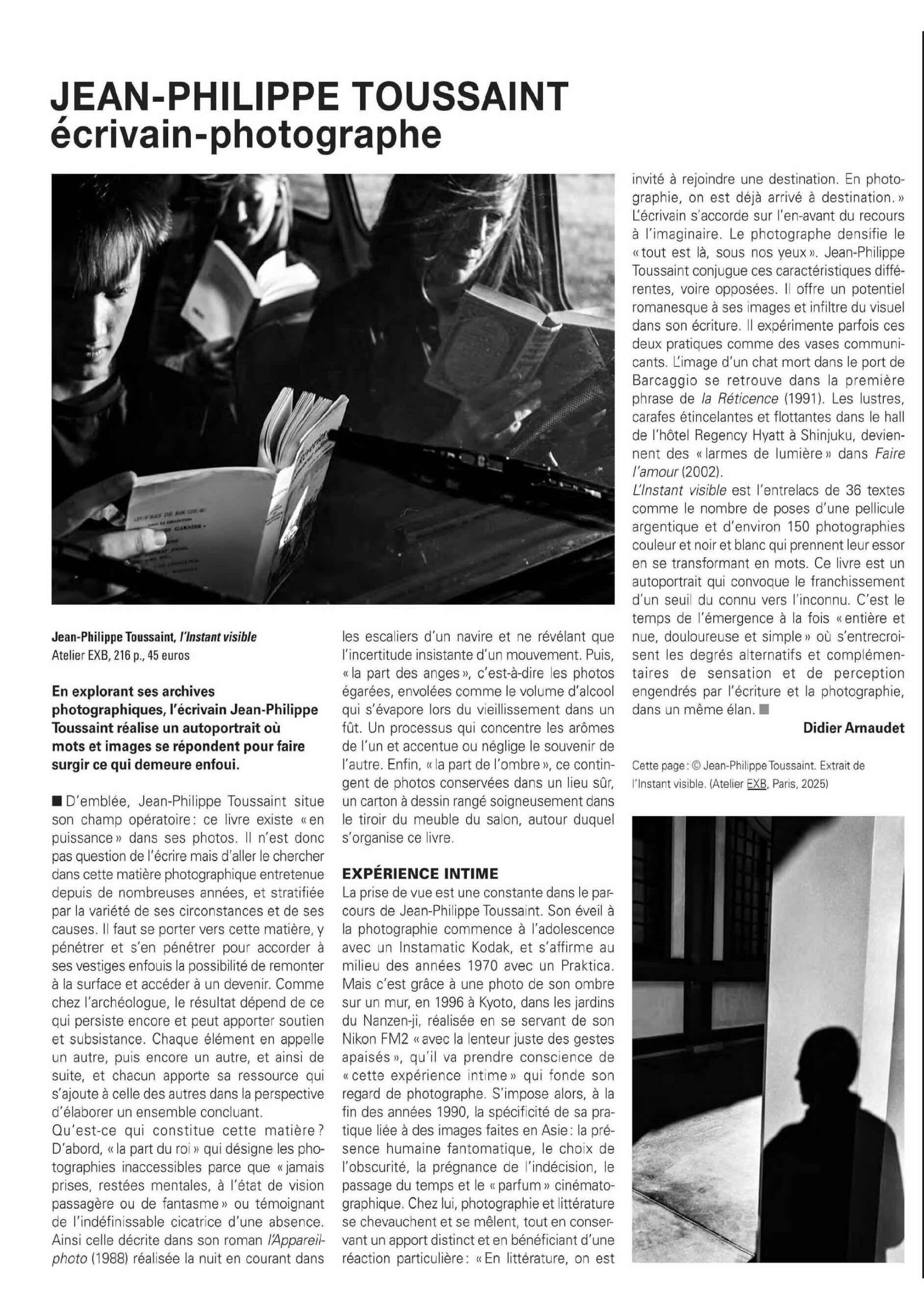 Jean-Philippe Toussaint, les photos et les mots, par Guy Duplat La Libre Belgique, 10 décembre 2025