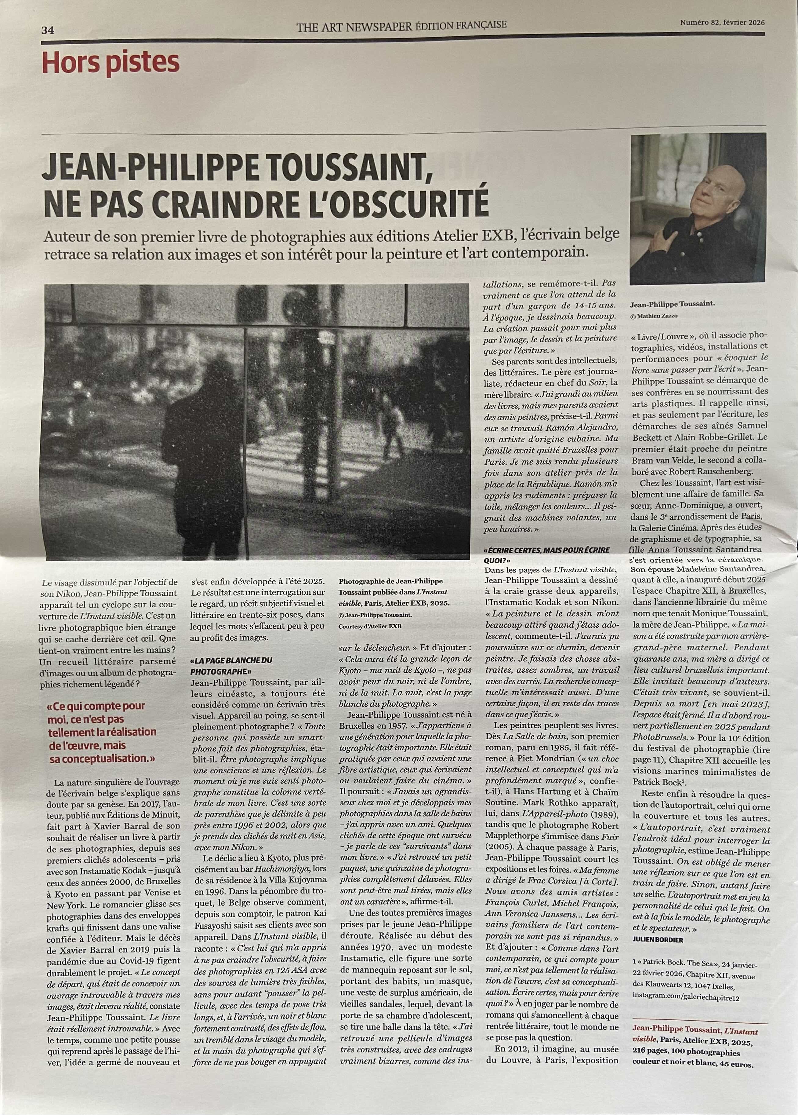 Jean-Philippe Toussaint écrivain-photographe, par Didier Arnaudet, Art Press, février 2026